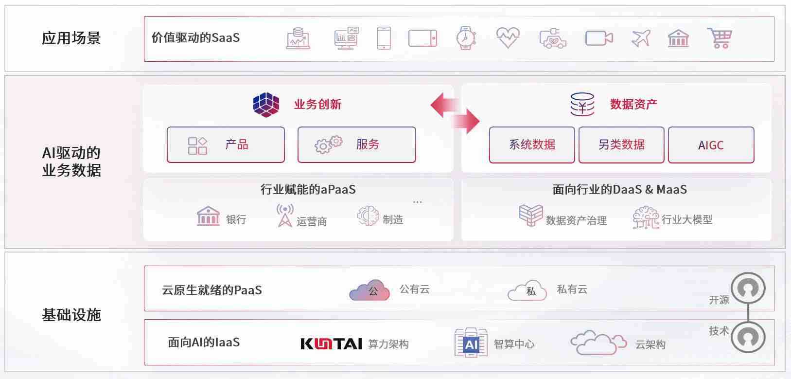 数字时代,,,围绕企业数字化转型的关键要素,,,,PG娱乐数码开创性的提出数云融合战略和技术体系框架,,着力在云原生、、、、数字原生、、、AI原生和信创产业上架构产品和服务能力,,为处在不同数字化转型阶段的快消零售、、、、汽车、、金融、、、医疗、、、政企、、教育、、、运营商等行业客户提供泛在的敏捷IT能力和融合的数据驱动能力,,,,构建跨界融合创新的数字业务场景和新业务模式,,,助力企业级客户建立面向未来的核心能力和竞争优势,,,全面推动社会的数字化、、、智能化转型升级。。。。
